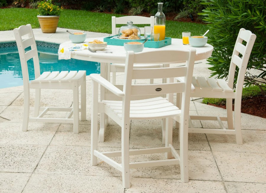 - Can accommodate 4 seats; all POLYWOOD dining seats tuck neatly under table